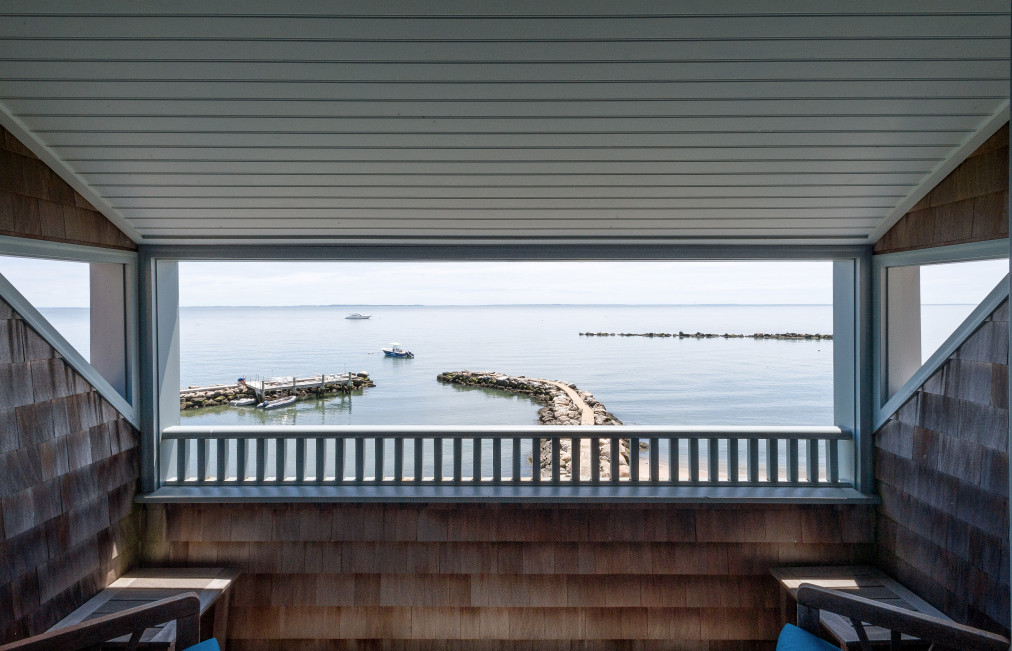 Four decks overlook the Long Island Sound, Connecticut River, a pond, and a golf course.
