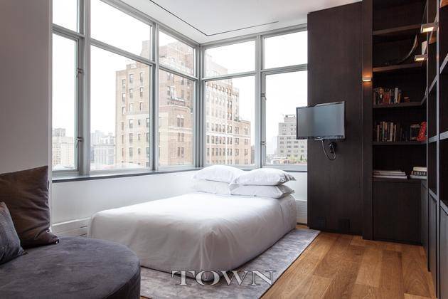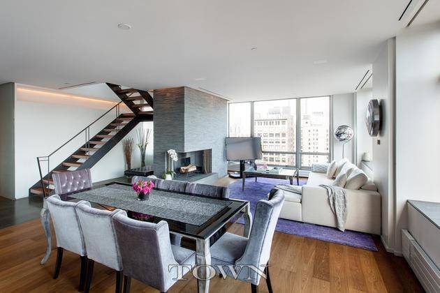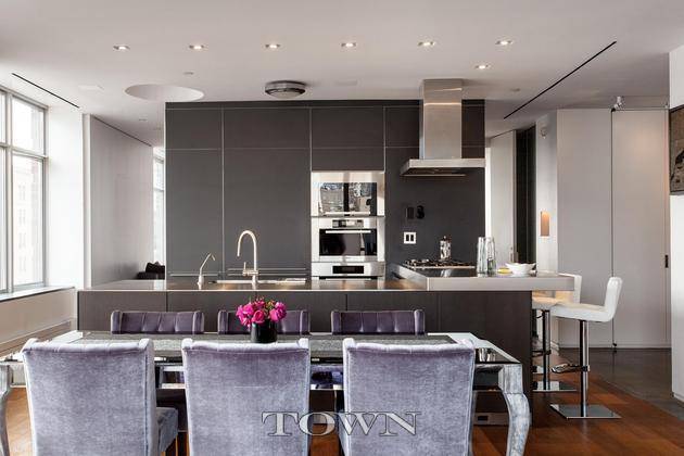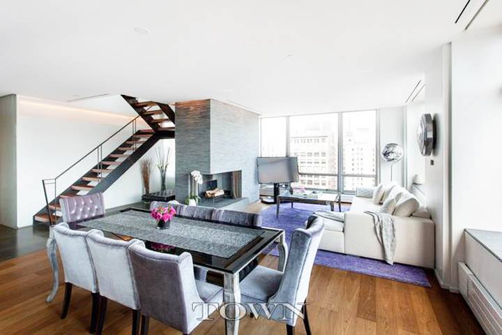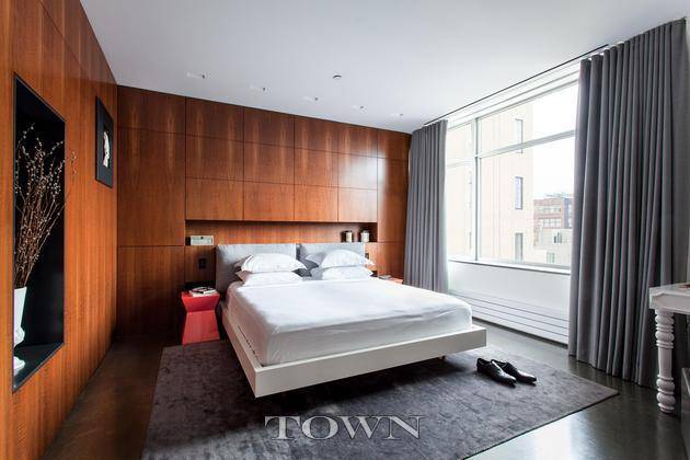 Modern lines and sleek furniture adorn this spacious abode, complete with floor-to-ceiling glass windows that offer stunning 270-degree views of Manhattan’s most famous architecture, including the Empire State Building and the World Trade Center. The three bedroom, two bathroom pad features a chef’s kitchen, wood-burning fireplace, master suite, and a perfectly landscaped terrace with an outdoor shower.