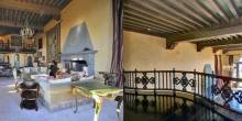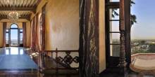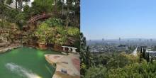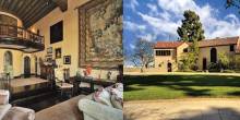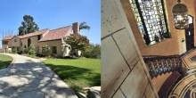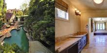 The residence features a total of seven bedrooms and nine bathrooms, boasting 8,835 square feet of living space spread across three stories. Inside, this charming home features scenic views, a stunning jungle oasis-like backyard pool area with a small footbridge and ultra high painted ceilings.