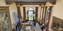 The Mediterranean-style mansion is complete with seven bedrooms and nine bathrooms, a formal living room, an artsy foyer, and an incredible terrace with handcrafted in-ground pool…what’s not to love?