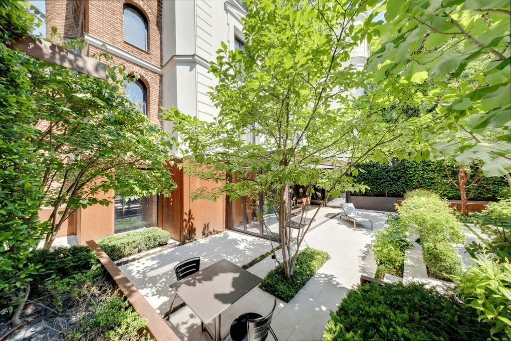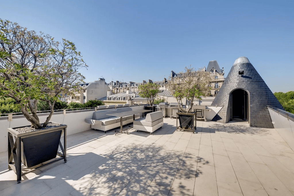 Tranquil Contemporary Mansion with Enchanting Rooftop and Garden in Paris’ 16th Arrondissement (Foch) – Located on a private path from the Avenue Foch district, surrounded by 355 sqm of outdoor space, a 515 sqm contemporary residence, completely renovated in 2017. Rising over 7 levels, this mansion, in perfect condition, is organized as follows: on the ground floor, a discreet entrance leads to the dining room and its large kitchen overlooking a veranda with, in its wake, a contemporary landscaped garden. on the first floor, a large living room with a terrace overlooking the facing south-east garden. On the second floor, a master suite with a bathroom and a shower room as well as a spacious dressing room. On the third floor, two beautiful bedrooms with bathrooms, a large dressing room or third bedroom, a kitchenette, and living space. On the fourth floor, a space currently converted into an office/living room with a shower room that can be converted into a studio apartment. The fifth floor offers access to a 50 sqm terrace offering an unobstructed view of the private mansions of the private path and on the west of Paris. In the basement, a swimming pool with movable bottom, a fitness room, and a sauna. All the levels are accessible by elevator except the fifth floor. Three reserved parking spaces complete the sale: two of them are located on the private path and the third one is at the entrance to the garden.