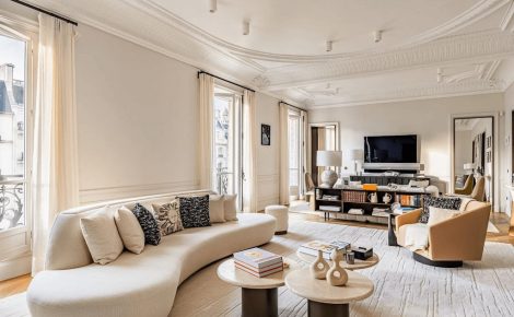 Golden Triangle – Triangle d’Or- Georges V – is located between three of Paris’s most famous boulevards: the Avenue des Champs-Élysées, the Avenue Montaigne, and the Avenue George V Studded with high-end boutiques, fashion houses, and some of the cities most iconic sites, attracting the world’s most glamorous crowds. In a beautiful building with well-maintained common areas, on the 4th floor with an elevator, a superb apx 2,088 sq.ft (approx 198 sq.m) apartment, entirely renovated by a renowned architect, enjoying fantastic views of the Eiffel Tower. Featuring an entrance gallery, a double living room, a chef’s equipped kitchen, a formal dining room, a master bedroom with dressing room and en-suite bathroom, and two additional bedrooms with a bath and powder room. A cellar and a parking space complete this stellar property. This apartment is sold furnished. Call or text KC Martin at 505-690-7192 or 310-269-7304 for more information (Dial “011” prefix if calling outside the US) or kc.martin@sothebys.realty.