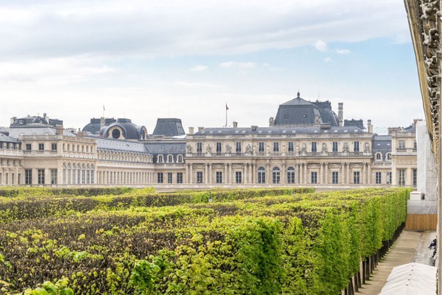 In a 18th-century building of Palais Royal, on the noble floor, above the mezzanine floor, a stunning Parisian apartment overlooks the gardens of the Palais Royal, comprising an entrance gallery, a large bedroom with its bathroom overlooking the gardens, a further bedroom with bathroom opening on to a street, a large eat-in kitchen/ dining room with a stone fireplace overlooking a street. High ceilings, light and bright with original floors, and Versailles parquet flooring. True Parisian elegance. Also available with this apartment: a studio apartment on the top floor of the building accessed by lift for €350,000.00 and a garage on the ground floor for €250,000.00.