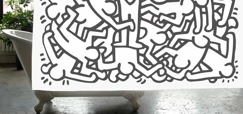 For those who adore contemporary design but dislike the staid, sometimes cold feel of this look, we have a small shot of pizzazz. One of iconic contemporary artist Keith Haring’s works has been made into a shower curtain which is both timeless and unique. The late artist’s design for a shower curtain features his iconic tangle of humanity, where outlined silhouettes collide in beautiful chaos across the 72”x72” space.