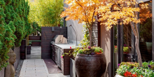 The chef’s kitchen features high-end appliances, including a fully vented six-burner Wolf stove with griddle, two Electrolux dishwashers and three Sub-Zero refrigerators. The luxurious master suite features two large walk-in closets and a marble bath with a a deep air jet Jacuzzi.