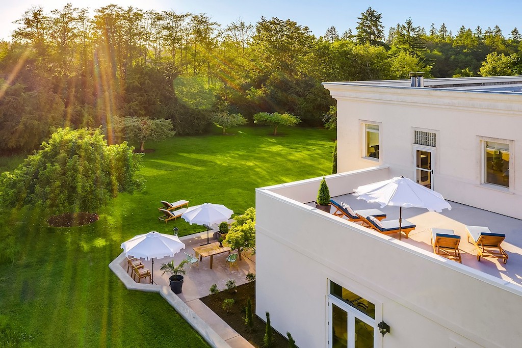 10000 NE Kitsap St Bainbridge Island, WA 98110 – On Bainbridge Island, just across Elliott Bay in Puget Sound from Seattle, is a very special 10-acre property that was built in 1940 by the U.S. Navy just prior to WWII as the operational command center of the Navy’s North Pacific Fleet communication system. Considered one of the most historical properties on the West Coast, this one-of-a-kind residence has been transformed into a timeless island estate that has retained its historic appeal. Classic design and modern amenities fill the 12,018 sq. ft. home that is the epitome of luxury, style and privacy. An indoor pool, 5-car garage, formal gardens, lovely patios and terraces, and a gorgeous gourmet kitchen that overlooks the property create an unprecedented level of luxury in this legacy property that is being offered for $8,750,000.