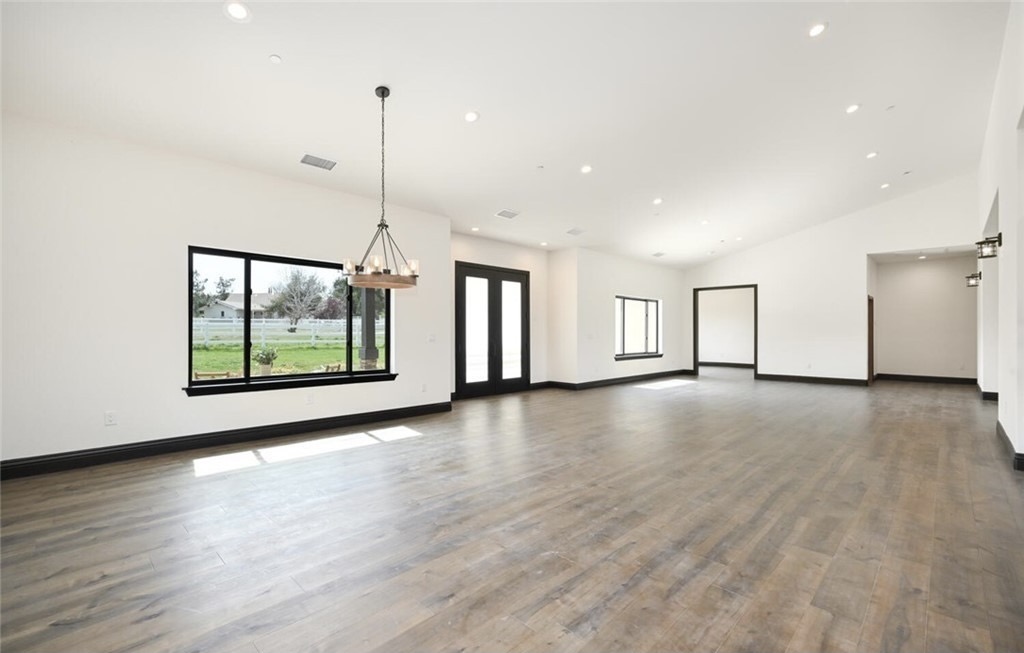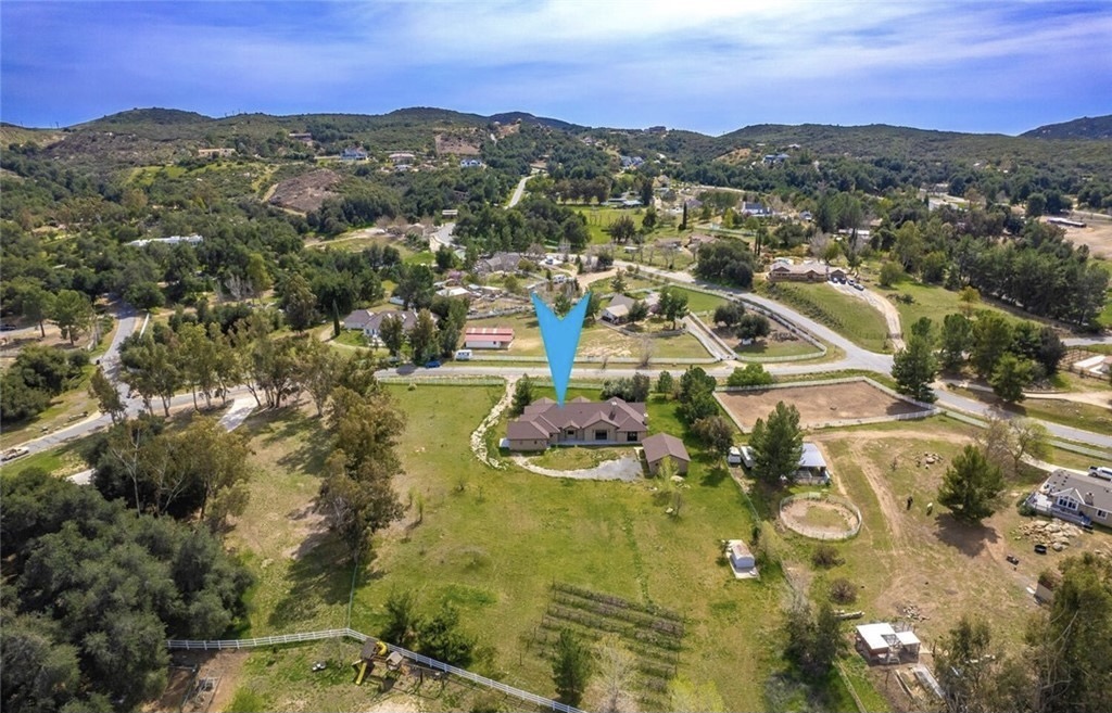 Beautiful home set on a 2.3-acre lot, this brand new, single-story Ranch style home in Lake Elsinore offers one of the best outdoor and farming lifestyles. The main house is 5400 Sqft & the guest house is 975 Sqft. This home features multiple living spaces to choose from while the expansive outdoors gives you plenty of room to entertain, garden, raise cattle, and more. This incredible abode also features an established boutique vineyard for potential hobby wine production. Step inside this immaculate 4-bedroom, 4-bath residence with hardwood floors throughout. The stylish kitchen has a granite-topped island, a Bergazoni stove, and ample storage space. Adding even further appeal is the attached oversized 2-car garage, Smart Home-ready wiring, and a 50-amp car charging station.