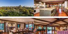 This seven-bedroom, ten-bathroom hideaway offers a generous guest house, canyon views, a pool, beautiful vines on the home’s façade, exposed beams, hardwood floors, a rustic-looking kitchen with state-of-the-art appliances, an incredible covered outdoor entertaining space with a fireplace and a slate roof.
