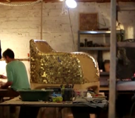 Style.com indicates that the collection will include primarily black and gold colors and features “a club chair graced with Versace’s iconic Medusa head and a Bondage bench generously wrapped in straps.”
