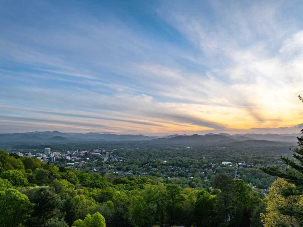 This stunning home has been extensively renovated, offering year-round views of the downtown Asheville skyline, surrounding mountains, and spectacular sunsets on Town Mountain in Asheville, NC. This property features four spacious bedrooms, a flex room for office or exercise space, and four and a half completely updated bathrooms. The heart of the home is the gourmet kitchen, equipped with high-end appliances and finishes, perfect for culinary enthusiasts. The cozy family room and the reading lounge are ideal relaxing spots, while the expansive living room offers endless entertaining possibilities. Three-car garage, two primary suites, one on each level, and tons of storage. Outside, the home sits on a generous 1.5-acre lot with a flat, fenced side yard, a charming terrace, and a deck with panoramic views, providing a perfect blend of privacy and open space. This ‘like new’ home is rare, offering luxurious living in one of Asheville’s most sought-after locations.