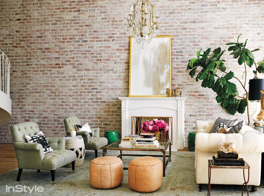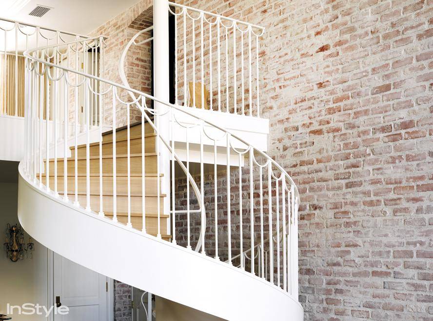 To imitate a New York loft, Conrad—who did not star alongside Hills-pal Whitney Port in the NYC-based show, “The City”—installed a whitewashed exposed-brick veneer and decorative fireplace in her living room, which also features a spiral staircase.