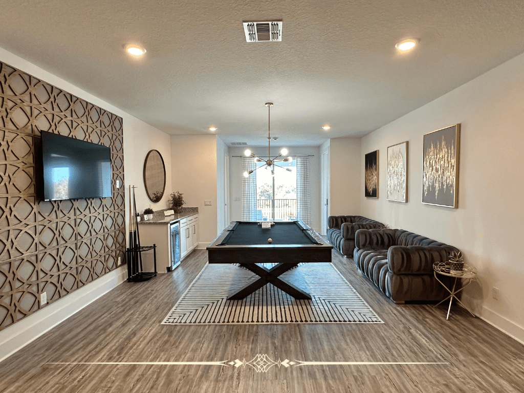 The house itself promises a vacation experience like no other. From an entertainment room filled with arcade games to a state-of-the-art gym, every aspect of this property has been crafted for enjoyment and relaxation. The outdoor pool is a serene oasis, ideal for guests to unwind after a day at Disney.