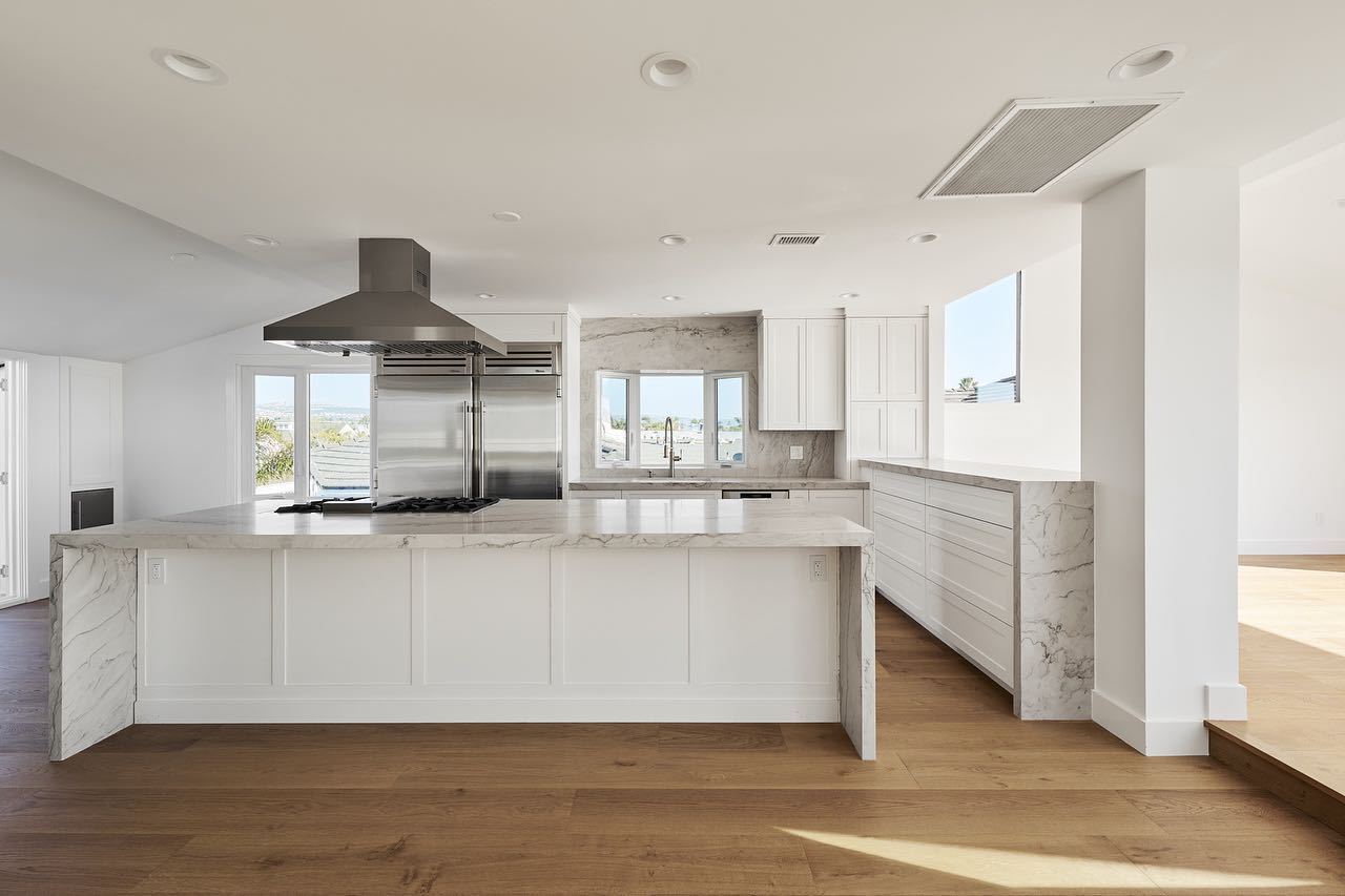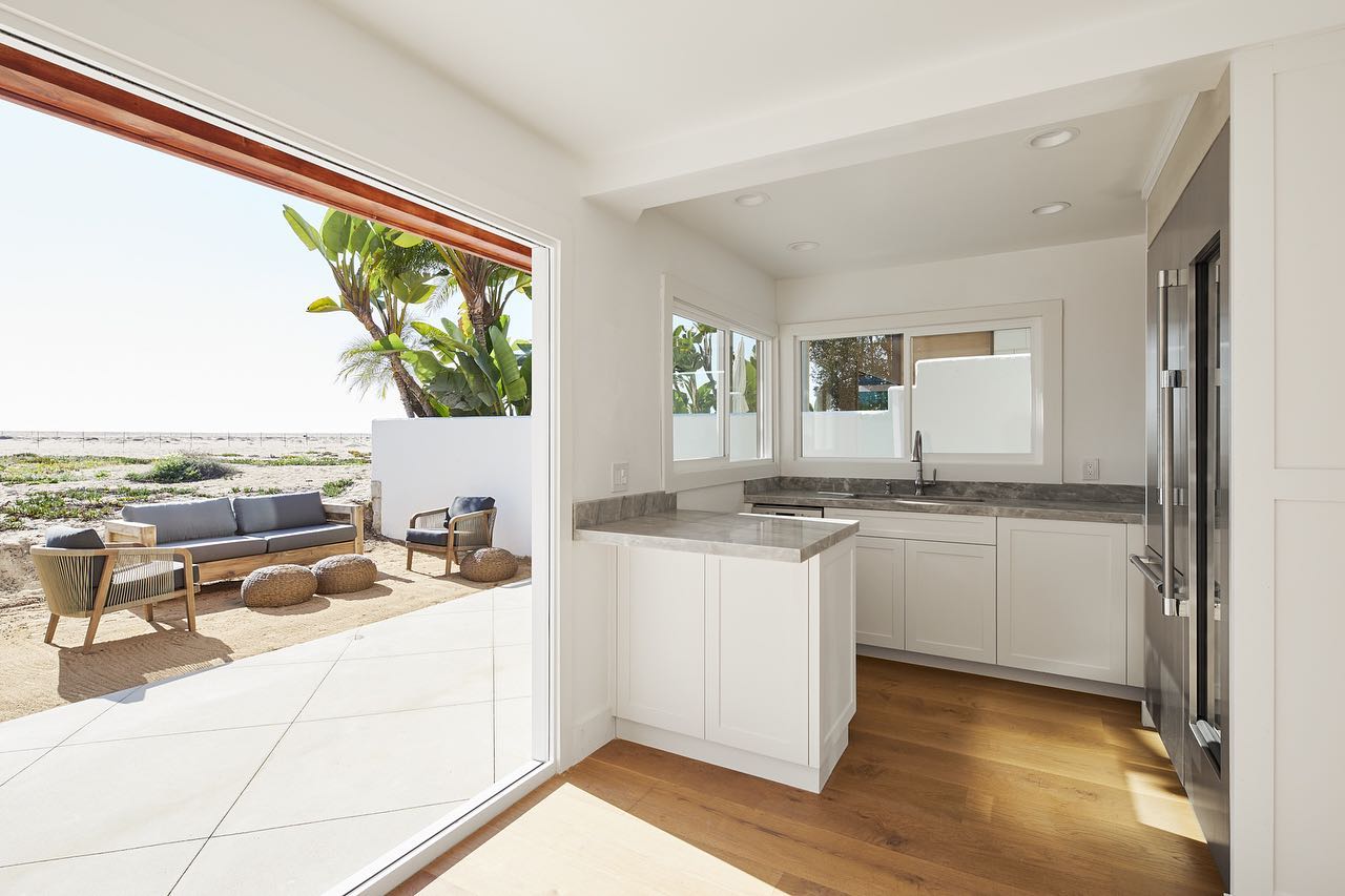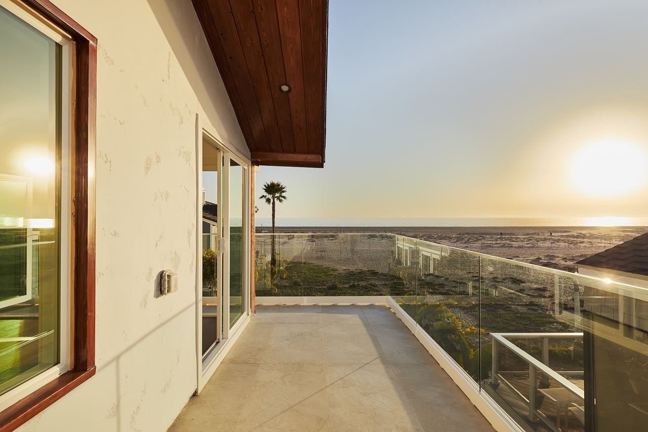 The pinnacle of the Newport Beach lifestyle awaits you at 1317 East Balboa, a truly one-of-a-kind 5 bed and 6 bath beachfront residence that has been completely remodeled down to the studs—new electrical wiring, new plumbing, and new roof. Upon approach, your eyes are immediately taken to the lush living wall of greenery that wraps around the second story. The first floor is complete with a secondary living room and kitchen, including a Thermador wine fridge and wet bar, that is perfect for beach entertainment. Pull back the retractable walls that open to your private outdoor patio with steps that lead directly to the sand and the boardwalk. On this first level, you will find your first two of five bedrooms, along with a beautiful custom-built elevator that serves all levels. On the second floor, there is an office space and three additional bedrooms with ensuites, including the breathtaking primary suite. Wake up each morning in the primary to picture-perfect ocean views. Pull back the retractable wall and step onto the primary’s private wraparound deck with expansive views of Catalina Island. The third level is a true entertainer’s dream. A full chef’s kitchen complete with Tru refrigeration, Caliber appliances, Bosch dishwasher, warming drawers, and waterfall countertops. This leads to an open living area with vaulted ceilings and a retractable wall. On this level, you are also welcomed by two outdoor areas—a west-facing wraparound deck with massive panoramic views of the Pacific and Catalina Island, as well as an east-facing 20’ x 23’ deck with views of yachts sailing through Newport Bay.