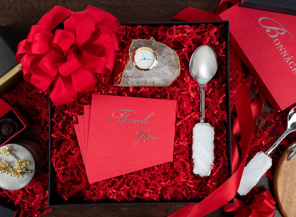 Our customer service is unparalleled and everything is individually handled. From the packing of the boxes to the hand-written thank you cards and hand-crafted bows, it’s all done with care by our Bonnâge team. We recently had a client call to expedite his order as the gifts were for his wedding party, and the rehearsal dinner was in three days. We pulled his order, carefully packed all of the gifts, and we drove to our local UPS distribution center to ensure that he would get them the following day. This is the level of service that clients have come to expect from Linly Designs, and what we are so proud to offer with Bonnâge.com as well.