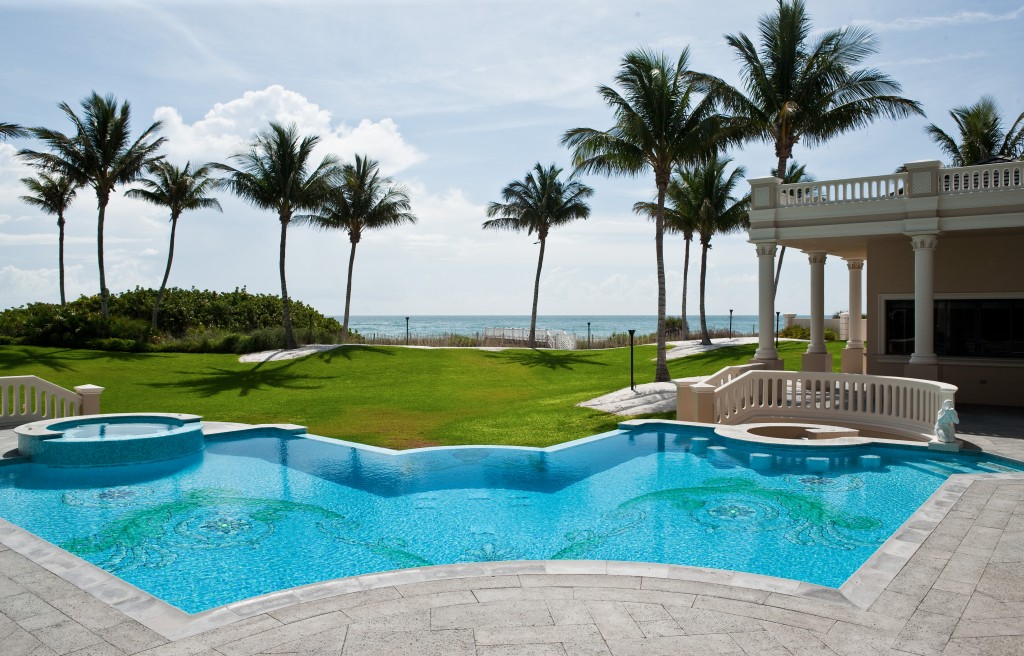 Located on five lush acres of land in Vero Beach, Florida, the $20 million property features a six-bedroom, 10-bathroom main residence; a one-bedroom, one-bathroom guesthouse; a circular driveway with a European-style fountain; an underground, climate-controlled garage with parking for 14 vehicles; a Venetian-inspired Italian pool with 14-karat gold leaf details; a 205-foot private beach with a sandy shoreline; and a private dock with a 10,000-pound automatic boat lift.