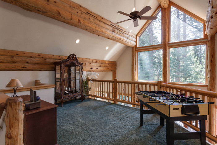 On the second floor, there is an open loft or game area with a foosball table and room for the imagination. A quaint TV room or sitting room is situated between the second master suite, a guest bedroom, and a shared bathroom.