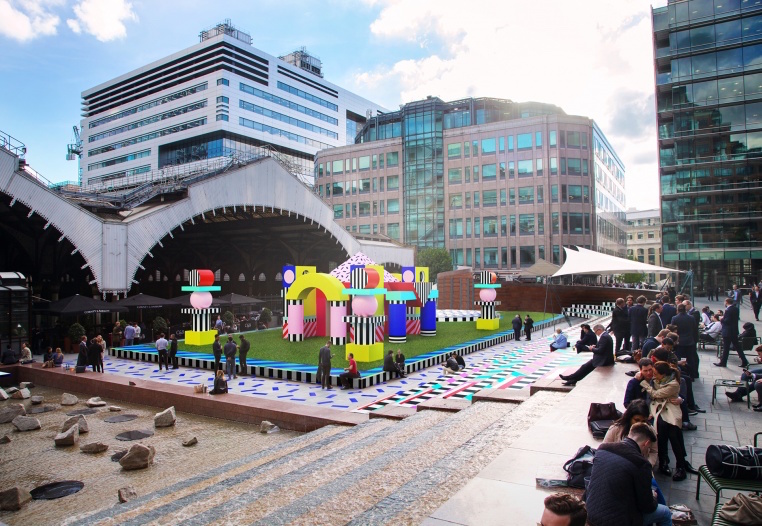 This sculpture, a home, scaled down into a courtyard in Broadgate, features some eye-catching color schemes. It’s buzz about town already is creating a sense that while you may not build one for the kids out back to play in, the visual stimulus and color explosion so popular in the sculpture is about to be a big part of color schemes in your home styling.
