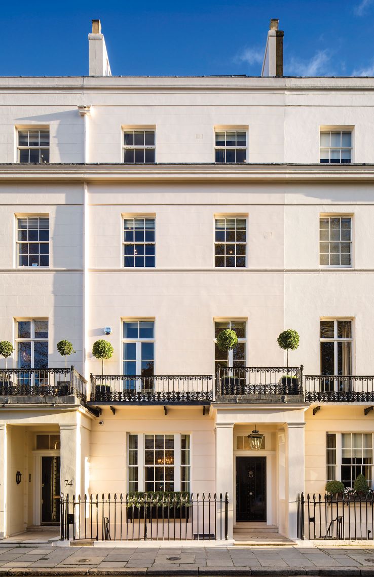 Margaret Thatcher’s former residence at 73 Chester Square, a small residential garden square in London’s Belgravia district, is recognizable for its inlaid “73” plaque in the front doorstep, designed by Baroness Thatcher herself, and also by the steel-lined bombproof door and shatterproof glass. But in many ways, the Grade II-listed townhouse epitomizes the contemporary grandeur of Prime Central London.