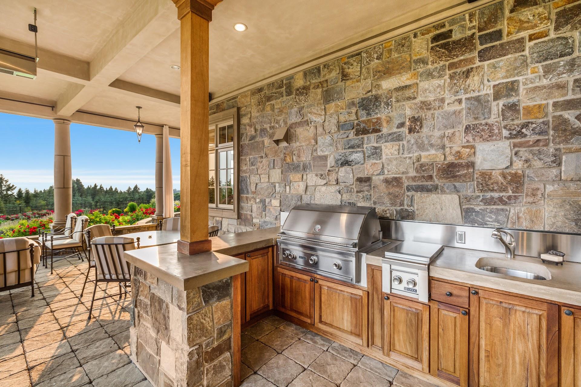 Just a 20-minute drive from downtown Portland and Silicon Forest into the quiet country is Villa Supérieure at Skyline Ridge Estates, an extraordinary private residence that stands atop Skyline Ridge overlooking the Tualatin River Valley and the Pacific Coast Mountain Range. This Old World European Style estate is a masterpiece of artisan craftsmanship using only the finest materials including custom stone and travertine tiles. Extraordinary woodwork blends with modern amenities like radiant heated floors and thoughtful lighting design to create depth and height, cozy moods, and to draw attention to the home’s most impressive features inside and out. Old World Style is based on architecture prominent on the Continent before the European discovery of North America. Its wide range of influences stems from several different places including the Mediterranean coasts of Spain and Italy and the countryside of France. Villa Supérieure’s owners meticulously designed and selected materials to create this dream home in order to call to mind a sense of antiquity and the elegance of bygone centuries.