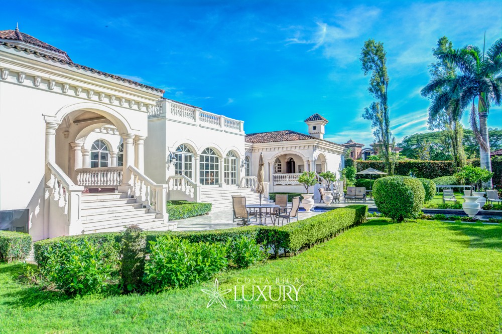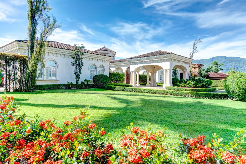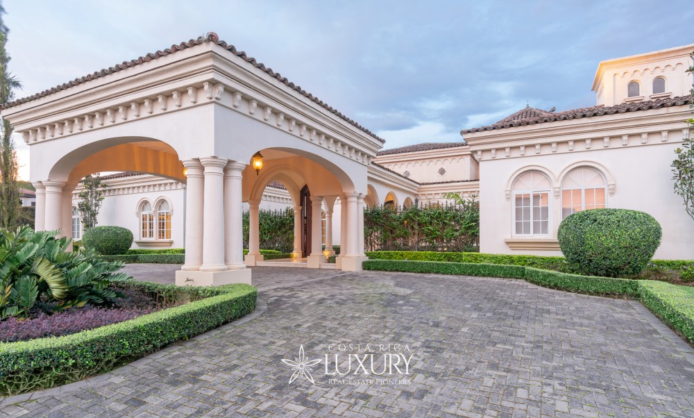 Located inside Bosques de Lindora in Santa Ana, one of the most prestigious gated community of the Central Valley, it enjoys of 24/7 top security and a nice club house with swimming pools and tennis courts. Fully equipped with attention to detail throughout, this exquisite gem offers grand living spaces, the ideal layout for multiple ambiances, a delight of any professional interior designer. Professionally designed in timeless classic Mediterranean architectural style. The residence offers marvelous detailing beyond expectations. Enchanted living spaces and stunning formal rooms paired with covered and tiered terraces invite lavish indoor-outdoor entertaining. Among the finest details you will find carefully crafted paneled ceilings and walls in precious woods, marble in all bathrooms, marble floors, coffered ceilings and roof to floor windows to keep the house clear and airy. The majestic swimming pool and BBQ area, coralline stone terraces and manicured gardens, provide the perfect ambiance for entertaining. From the entrance lobby, the house is divided into two different wings. One encompasses a large family room with an office, a guest bathroom, magnificent kitchen with large pantry and breakfast area. The kitchen has direct access to a covered porch, ideal for having breakfast outdoors. This area also comes with a maid´s bedroom with a bathroom and private access to the outside. A large laundry room, storage room and covered garage with additional parking area.Impressive from every angle, this sophisticated residence achieves the ultimate in urban living and entertaining.