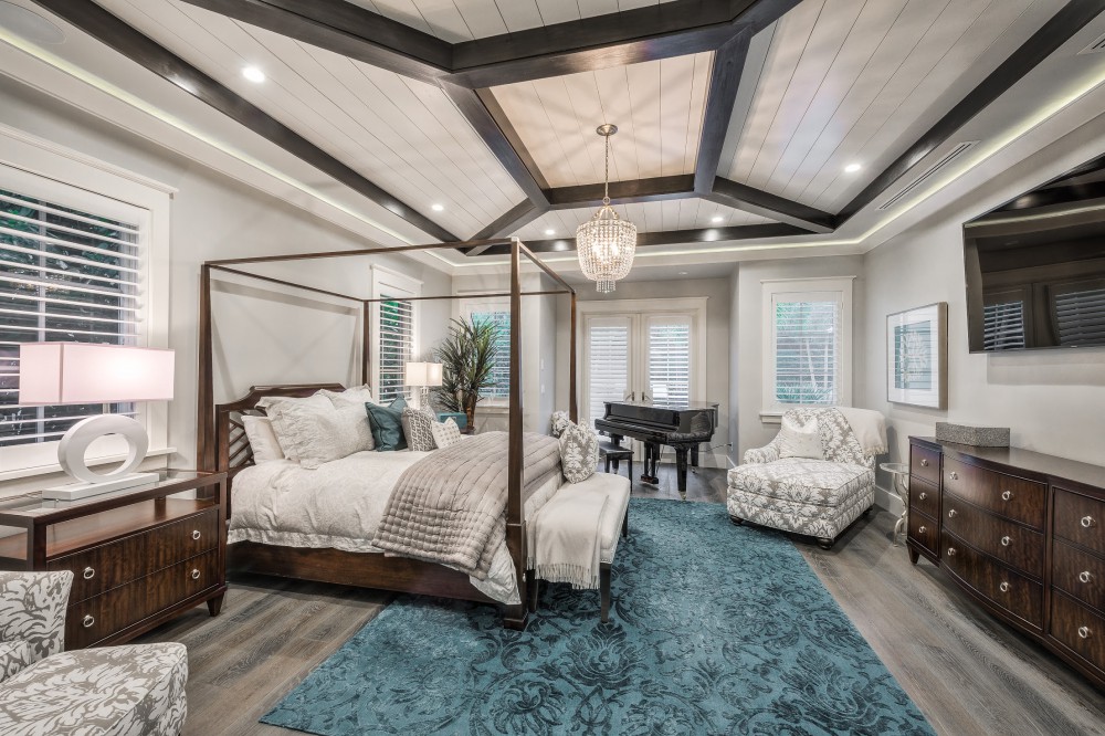 This four-bedroom, six-bath, 4,190 square foot home sits on a spacious interior lot with beautiful southwestern exposure. Designed by Matthew Kragh of MHK Architecture & Planning and built by T. Jerulle Construction in 2015, the open-concept home remains like new and comes fully furnished. The dramatic great room features a 22-foot ceiling and opens onto a kitchen that is perfect for entertaining. This spacious estate includes a full chef’s kitchen, expansive island, gourmet Wolf and Subzero appliances and custom cabinetry. The exquisite finishes and highest quality architectural and construction detail make this home one-of-a kind. The wide-plank wood flooring throughout is complemented with occasional uses of marble and terrazzo, while spectacular overhead fixtures bathe the home in light. The outdoor living area features a kitchen with island, fireplace and television. The home also features a large three-car garage and lush landscaping providing a private tropical oasis environment.