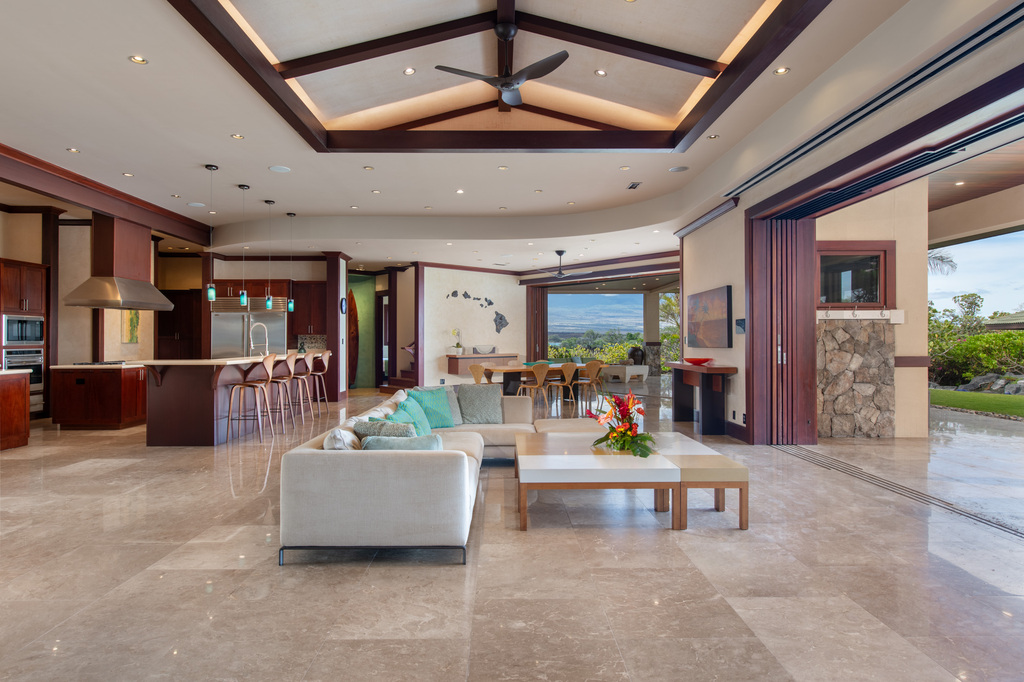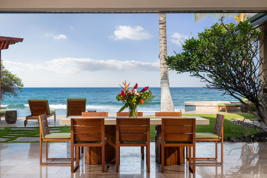 Wake up to breathtaking vistas from the second-story observatory nook, where you can enjoy the serene sight of surfers catching waves and dolphins gracefully swimming by. During the season, delight in the spectacle of humpback whales frolicking in the bay, all while soaking in the beauty of an iconic year-round sunset. With world-class dining just a stroll away, returning home offers the chance to witness the awe-inspiring sight of an erupting volcano or the twinkling expanse of the Milky Way galaxy.