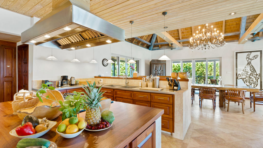Boasting views of the Atlantic Ocean and the Caribbean Sea, Red Rock Villa is truly a rare offering. Its pyramid roofs pay homage to the towering background boulders. Verdant palms and ancient rocks line a driveway to this secluded estate. This stunning home is masterfully designed around a tranquil courtyard that encompasses a Koi Pond, a Zen Garden, and a luxurious spa.