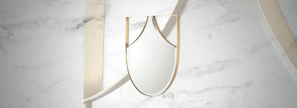 Able to add a contemporary touch to any bathroom design, this mirror fuses design references from two distinct cultures. Its overall shape reminds of the family crests of European nobility, while its two side openings evoke carp scales – a major Japanese symbol.