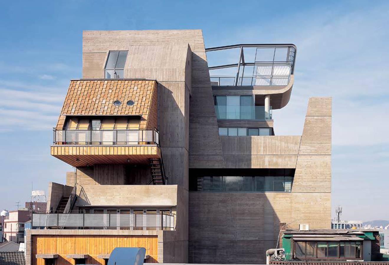 Korean architect Moon Hoon is well known for his remarkable way of bringing contrasting elements—both functionally and materially— together under one roof. So it is no surprise that he was chosen to design “Sangsang Museum” for his client—a famous commercial photographer who wanted “a modern castle for a Dracula,” his alter ego.