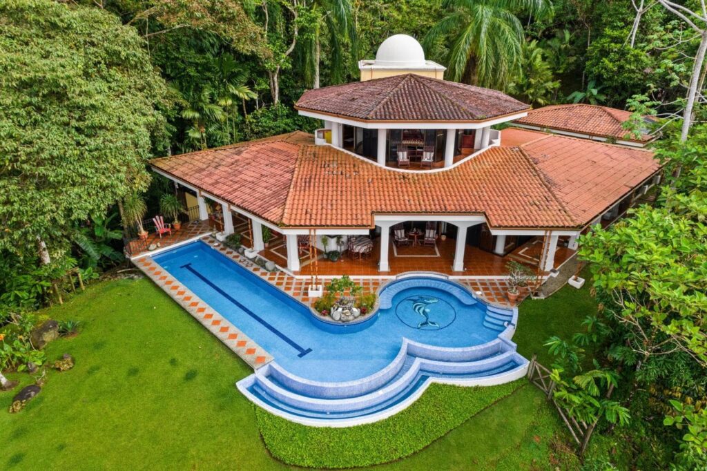 Blue Zone Realty International presents Nestled in the prestigious gated community on the southern Pacific coast, this nearly 8-acre estate features lush jungles, waterfalls, and a grand Villa blending Mediterranean and Spanish architecture. Enjoy panoramic ocean views, a two-story foyer with a domed fresco ceiling, and a principle suite with a wrap-around balcony. The main […]
