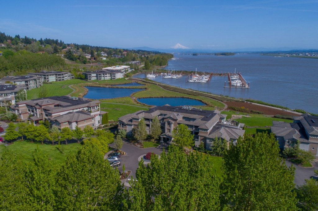 This spacious, sun-filled penthouse with sweeping views of Mt. Hood and the Columbia River is a luxurious retreat.