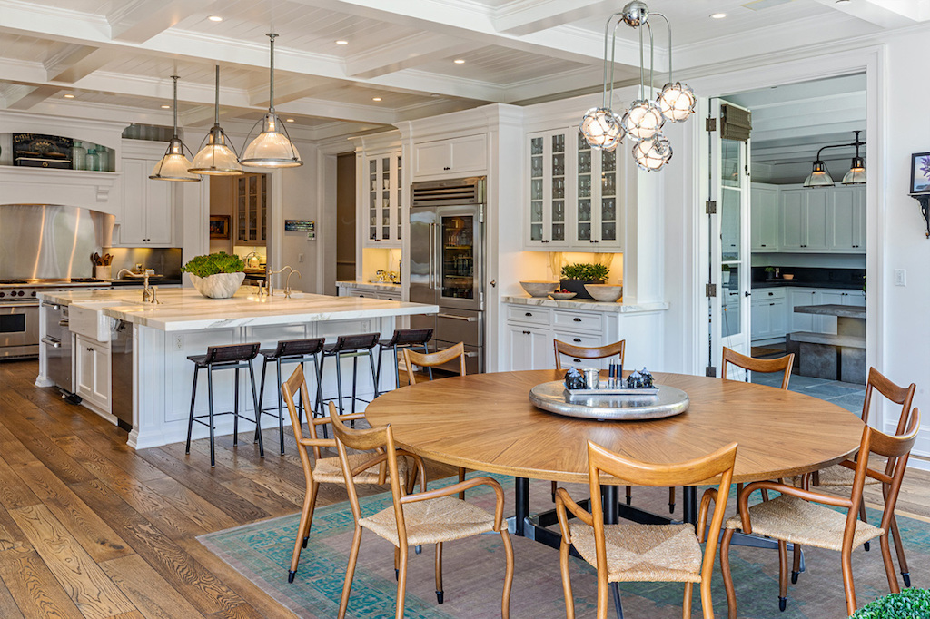 Don Nulty custom-designed the sizeable estate. In its current state, the property offers a sunken tennis court, a home theater, an outdoor living room, and more. The interior of the home showcases a lot of traditional elements, especially from the exterior, making it a big change from their contemporary compound in Pacific Palisades. Moldings and millwork can be seen throughout the home along with wood accents. French doors are also seen a lot throughout the home, allowing the interior and exterior of the home to mesh while highlighting the peaceful greenery.