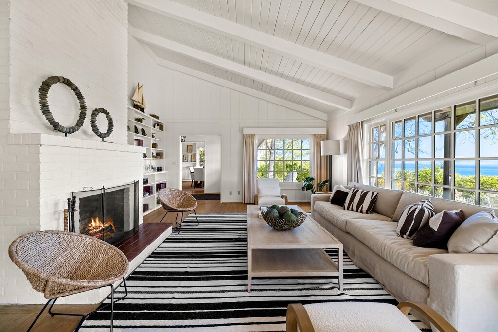 Never before in the MLS and owned by the same family for over 45 years, gain access to one of Montecito’s most private country hideaways. Prepare to be transported back to the simplicity of vintage Montecito living as nearly six and a half acres of lush pastoral property sit surrounded by panoramic ocean, mountain, and hillside views. Tucked at the top of a long private tree-lined drive and nestled among local ranches, privacy, and peacefulness here remain unparalleled. Scenic skylines, mountain vistas, and the melodic hum of nature create an enchanting dreamlike setting, while framed ocean views keep the picturesque California charm ever-present. Discover what it’s like to live in tandem with nature as you explore the vast property to find a meandering creek, a hidden island, and a hillside olive grove. One of three structures on the property, the 3-bedroom, 3-bathroom single-level rancher balances classic country living with breathtaking ocean and canyon views. The light-filled living room faces south and is anchored by a cozy fireplace, high ceilings, and built-in bookcases, while the primary bedroom suite enjoys the same special views.