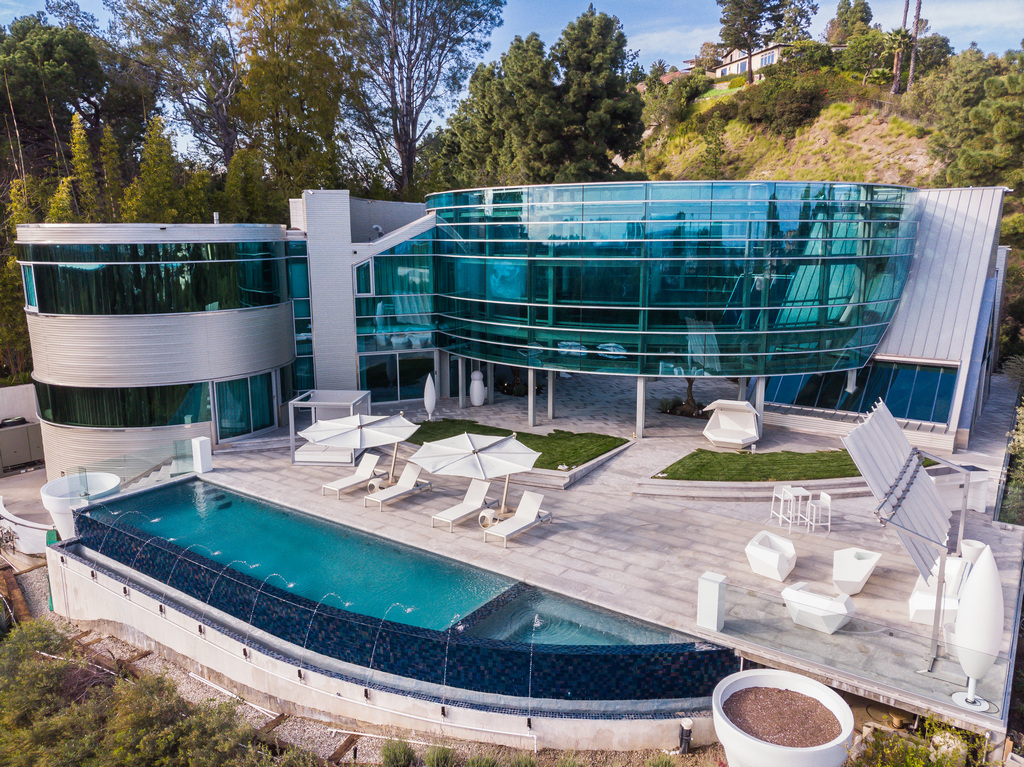 Architectural Masterpiece! Completely private view estate in lower Coldwater Canyon. Stunning in execution & design, this superb residence is a masterful creation. With circular walls of glass & soaring steel beams, the marvelous interior courtyard offers hypnotizing views of the infinity-edge pool to the city, sea, and beyond. Custom curved stainless windows and doors, wonderful views in every direction from all rooms. 6 bedrooms, 7 baths, 7 car garage, gated security, elevator. Exciting indoor/outdoor lifestyle for the most discriminating buyer. Designed by renowned architect Ed Niles. Located in the most sought after Beverly Hills location. Also available furnished for $68,000/month. Ready for move-in.
