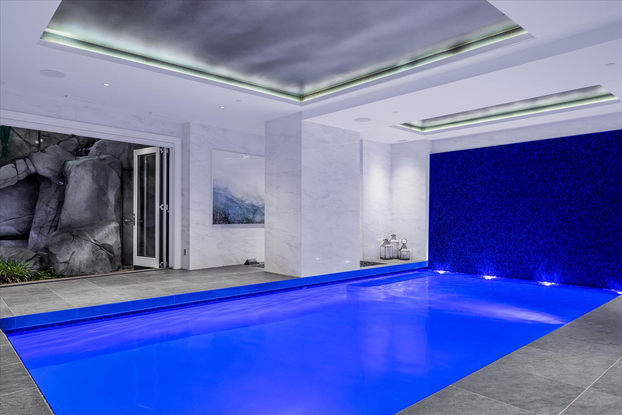 On the lower level, a large entertainment-size billiard room with a sensational Las Vegas-style Champagne Bar boasts a stunning temperature-controlled glass wine display together with a fabulous Bar Lounge. A resort-style indoor pool, jacuzzi, and spa bathroom together with a private gym and state-of-the-art Home Theatre complete the lower level of this truly extraordinary luxury home.