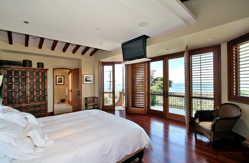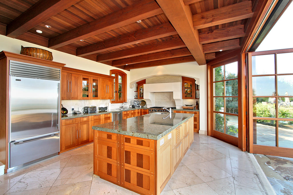 The kitchen is a cook’s dream with custom cabinetry in solid Honduran mahogany, Brazilian granite countertops, stainless steel appliances, a butler’s pantry, and floor-to-ceiling paneled glass doors that open onto a spacious Cameroon flagstone deck. Enjoy a 2,400 bottle climate-controlled wine room, 4 fireplaces, Venetian plaster walls, and imported marble, and mahogany wood flooring. The breathtaking yard is surrounded by gracious patios with mature landscaping, a large grassy area, a fire pit, built-in barbecue, vanishing edge pool and spa. Other notable highlights: 3-level security & monitoring system, computer-controlled radiant floor heating throughout, 3 zones of central forced A/C, built-in music system with independent stations, distinctive ceiling designs including custom Venetian plaster ceiling vaults, reclaimed wood beam ceilings, custom-designed solid Honduran mahogany doors, windows & shutters, custom light fixtures, smart wiring, and much more!