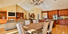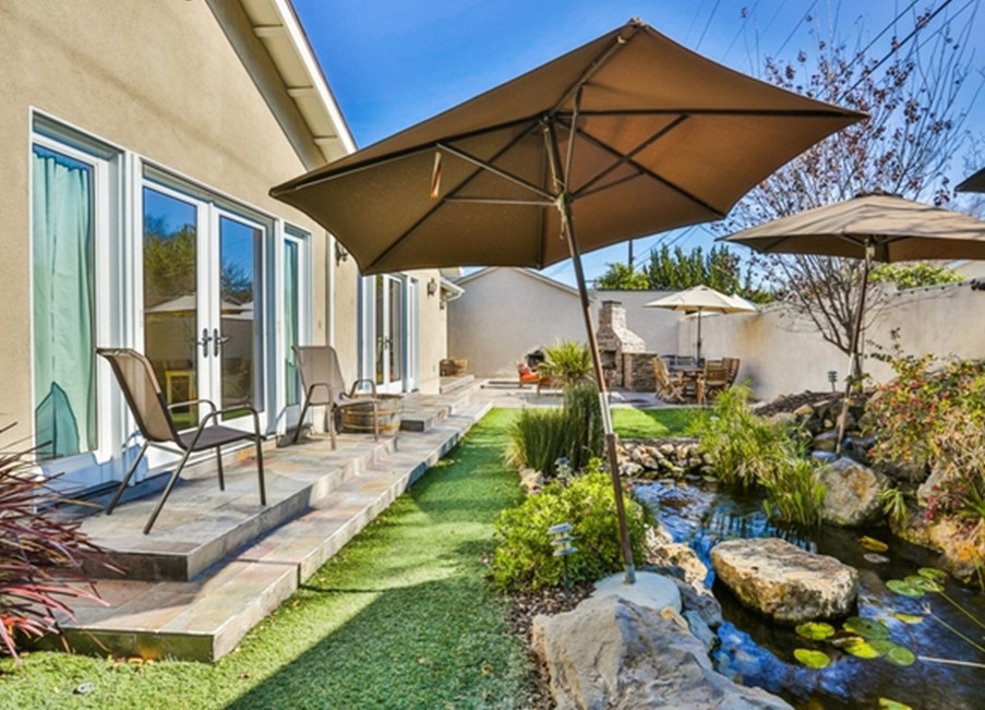 The pad she shared with her ex-husband and their two young sons is being listed at $1.299 million. Described as a “casual, elegant home with contemporary style,” it was rebuilt in 2007. A master suite with vaulted ceilings that opens up to a koi pond and cascading waterfall; a huge walk-in closet; a bathroom with a makeup area, a dual shower, and a separate tub; a spacious kitchen with stainless steel appliances and a huge walk-in pantry; and a yard with an outdoor fireplace and living area are featured throughout the property. There is also a great room with vaulted ceilings, oak wood flooring, and a laid-back aesthetic.