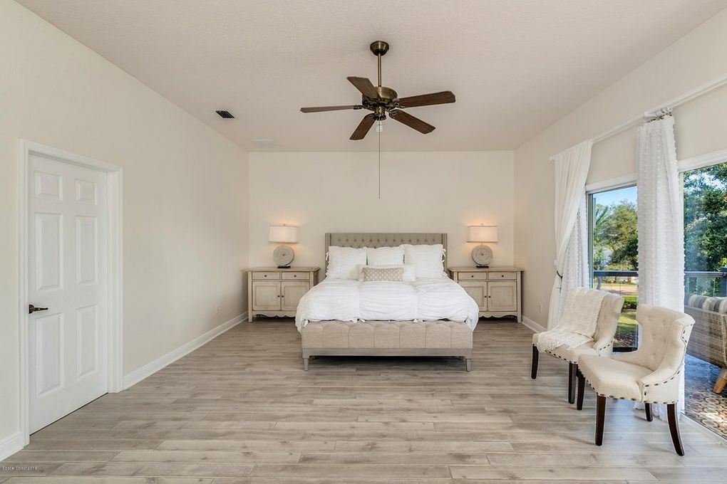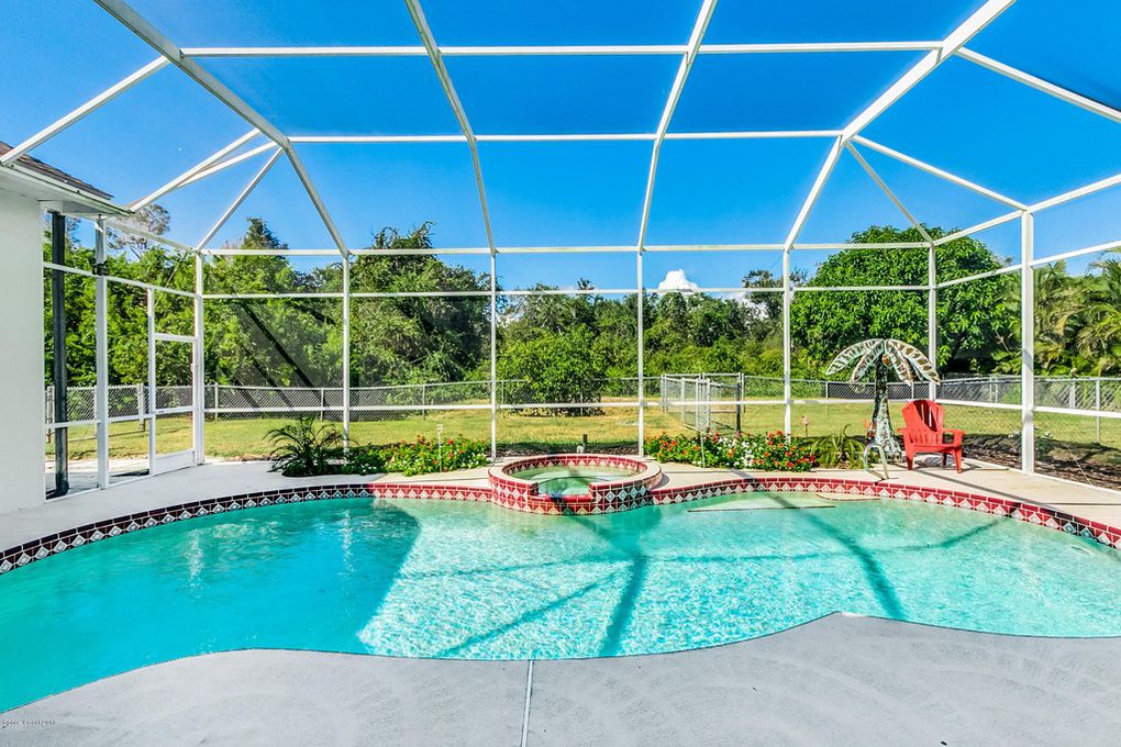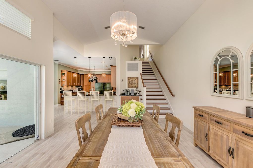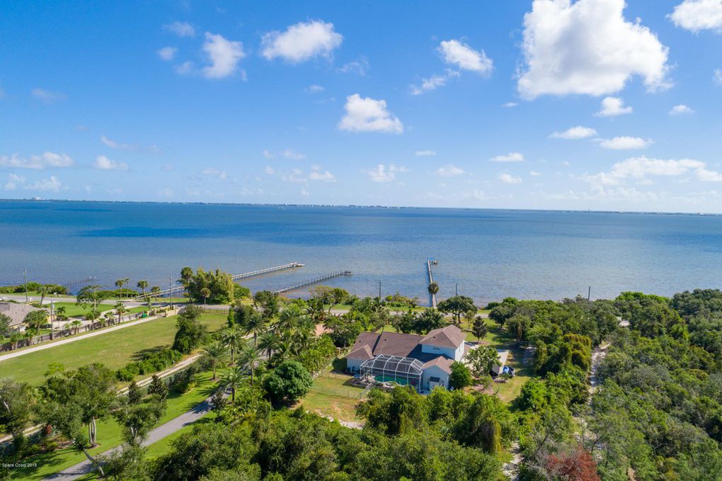 Newly renovated riverfront home that has been transformed into a coastal living inspired retreat. 1.06 acres with multiple fruit trees, mango, citrus, star fruit and more. The airy master bedroom on the second floor has spectacular views of the Banana River from the gorgeous tiled balcony retreat. New flooring throughout of rubber backed high end vinyl planking for easy comfort living. Vaulted ceilings, an open floor plan, family room with soaring modern white staggered ledge panel fireplace surround and gourmet kitchen with two refrigerators. Totally renovated bathrooms, riverfront office and huge family entertainment areas. Ultra private split bedroom plan. Large screened pool enclosure for poolside entertaining.