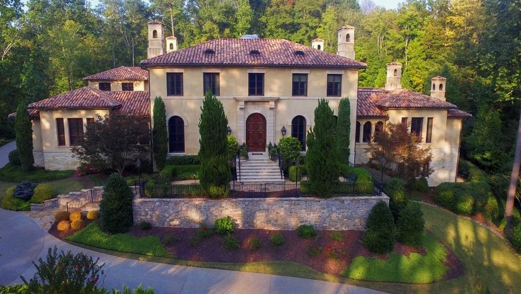 This spectacular custom-built estate in N Buckhead/Sandy Springs rests in an estate neighborhood on 2 private acres. Architects Harrison Design and Beacham Builders constructed this gated masterpiece.