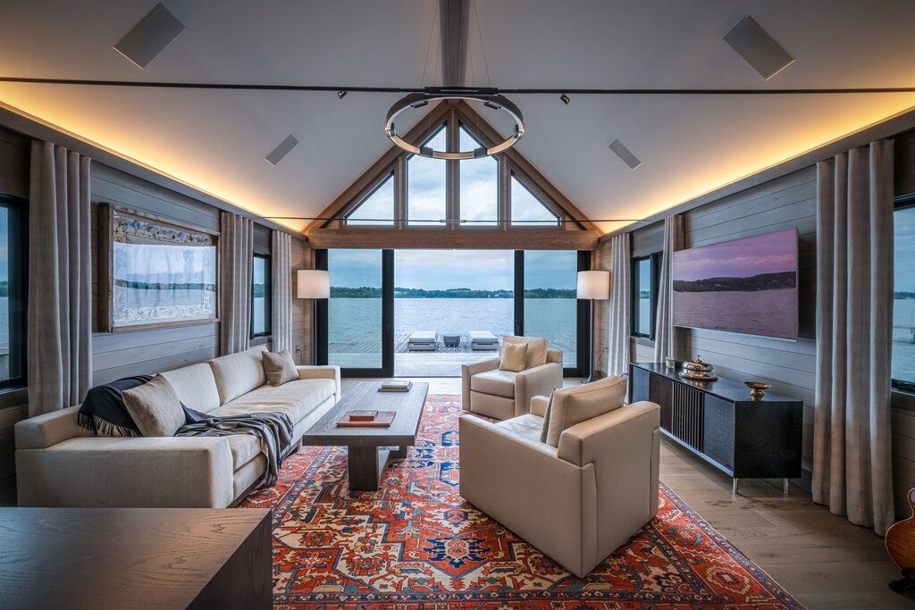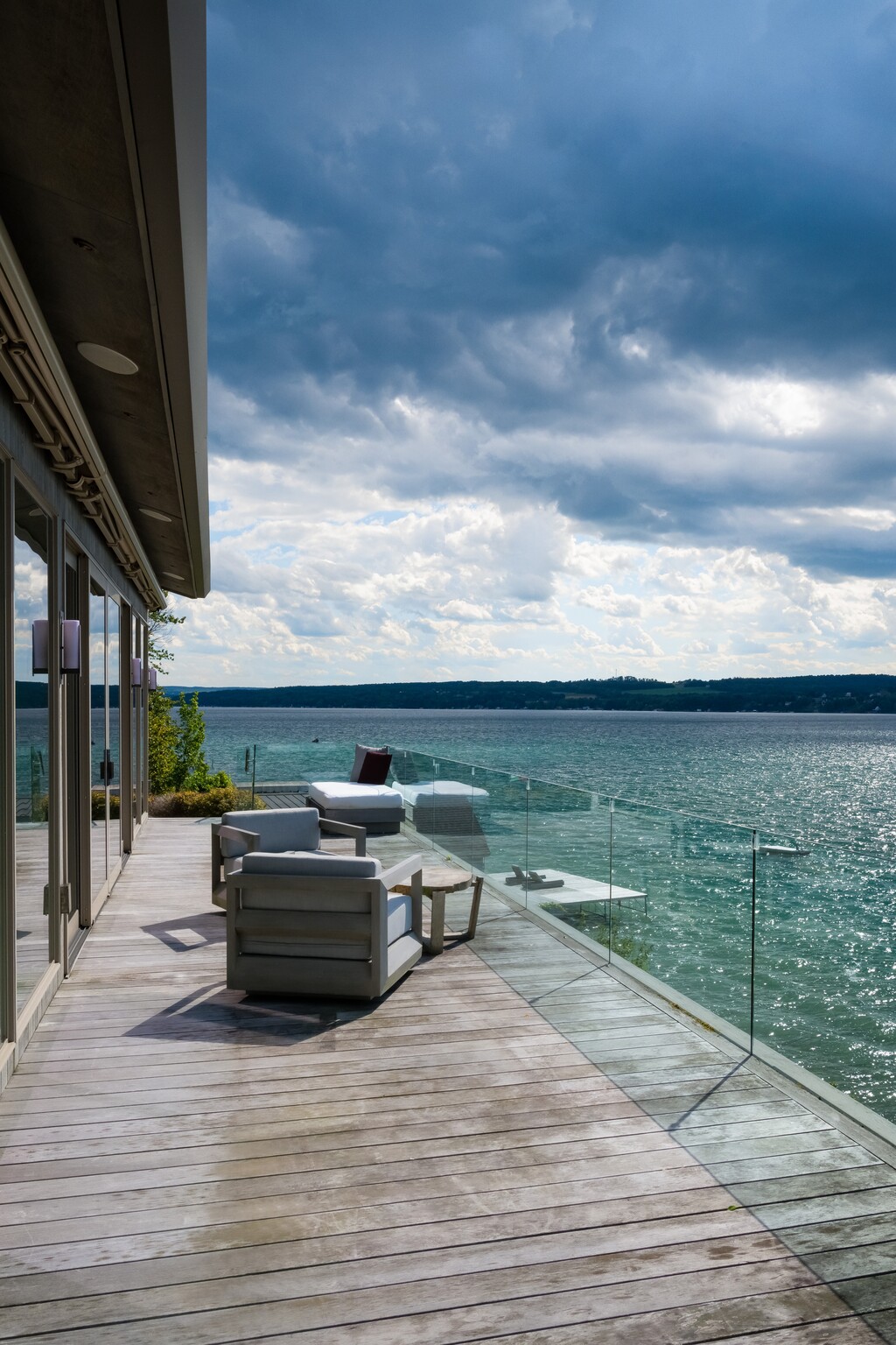 Experience the coalescence of water and land in this breathtaking Skaneateles Lake compound featuring a luxurious primary residence, spacious carriage house, and idyllic lakeside guest house, perfect for a private home office. Each features design details influenced by a modern minimalist aesthetic yet is seamlessly integrated into the landscape of one of the country’s most pristine lakes. Here you’ll live your way, with interior and exterior space that morphs and changes to accommodate your changing needs and tastes: from intimate gatherings of friends and family to full-scale events or moments of quiet contemplation, much-needed respite, and relaxation. Walls of glass open onto expansive decks, allowing you to make the 185 feet of private shoreline the backdrop to your most cherished memories and your most glittering occasions. Stroll winding stone paths and walkways, expansive decks, and docks and return to all that is essential while indulging the senses in ultimate luxury amenities including a private Padel tennis court, outdoor spa, and lakeside fitness studio. Located only 2.5 miles from the heart of Skaneateles Village on the coveted east side, yet a world away from the everyday.