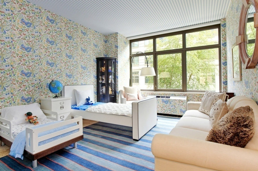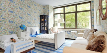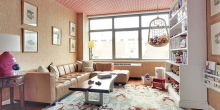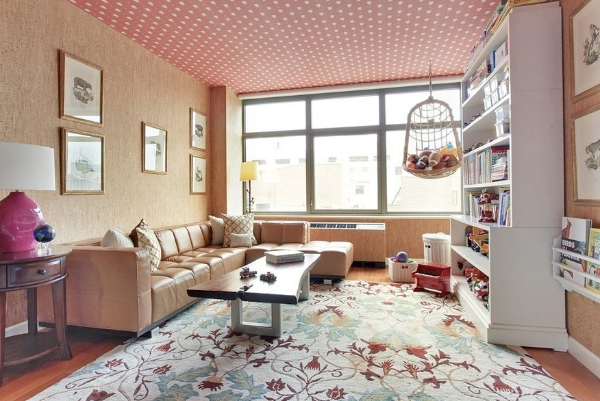 As you can see from these pretty-in-pink images, apartment #3CE at 1 Morton Square features the work of luxury designer Miles Redd for Jonathan Lupo. Lupo purchased the first apartment in 2004, then the second in 2010; this vibrant setup is the product of two combined apartments that were renovated into one large space.