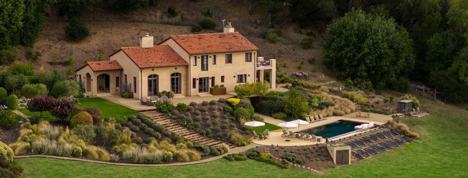 The property boasts immaculate grounds, terracotta roofing, custom ironwork, a stunning wet bar, tile and hardwood flooring, expansive outdoor covered terraces, in-ground pool, rooftop lounge and more.