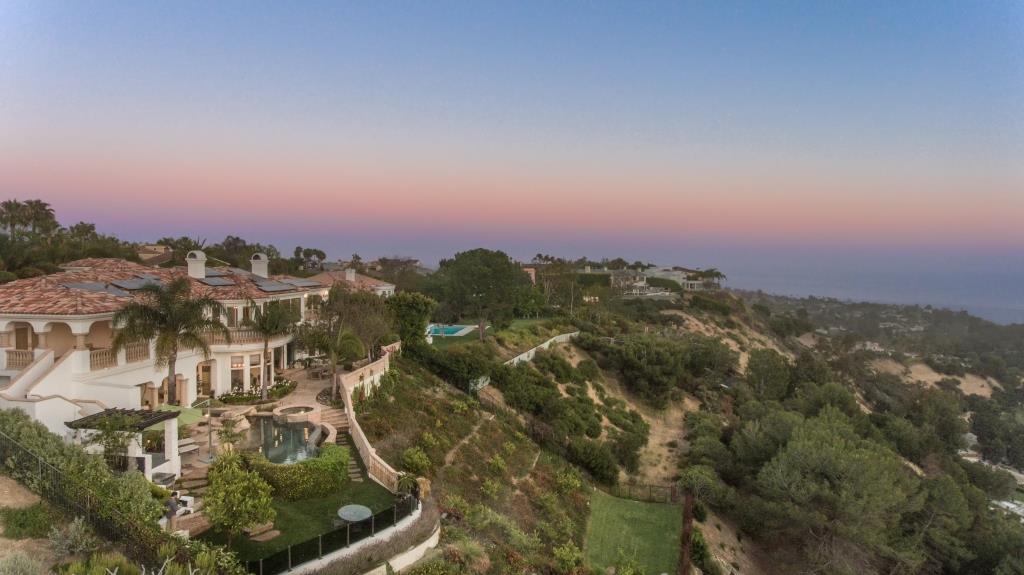 Located in the gated Ridgeview Country Estates, this enchanting Modern Mediterranean villa stuns with its unobstructed ocean and Tuscan-like vineyard views.
