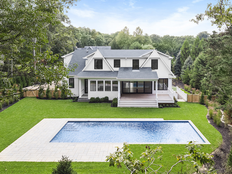 2 Rawson Road, Sag Harbor. Located in the Rawson Estates beachfront community in Sag Harbor comes a new luxury residence from the Curto Building Company, Peter Curto. Just completed, this modern farmhouse inspired new construction combines the open floor plan with transitional finishes to define today’s modern living. This new development has been meticulously designed and crafted with quality materials, fine finish and attention to detail. With brilliant sunshine, the stately white shingles glow in crisp contrast to the high gloss black and aluminum accents. Boasting 4,000 sf with 5 bedrooms and 5 and one-half baths. Grand paneled entry foyer flanked with formal dining that leads to the custom Ciuffo Cabinetry eat-in Chef’s kitchen equipped with a full suite of Subzero and Wolf, Bosch appliance package, butler’s pantry, and wet bar. The open great room is anchored with a linear gas fireplace and flooded with natural light through a wall of glass sliders that leads to the expansive covered deck. The main floor Jr. master suite along with side entrance mudroom, full pool bath and laundry completes the first floor. Upstairs a grand master suite with sitting area fitted out his and her closets, spa bath appointed with a mixture of stone, glass and designer fixtures along with custom Ciuffo vanities. Three additional guestrooms and laundry complete the second floor. Outback a secluded 44 foot heated Gunite pool and professional landscape package. A 2 car garage and an additional 2500 sf full basement ready to be finished for additional living space complete this offering. Just moments from the Noyac Golf Club, Morton Wild Life, Long Beach and equidistant to Bridgehampton, Water Mill, Sag Harbor, and Southampton. The community’s residents-only beach is moments away and offers majestic sunsets on the bluff overlooking Peconic Bay. 2 Rawson Rd., Sag Harb