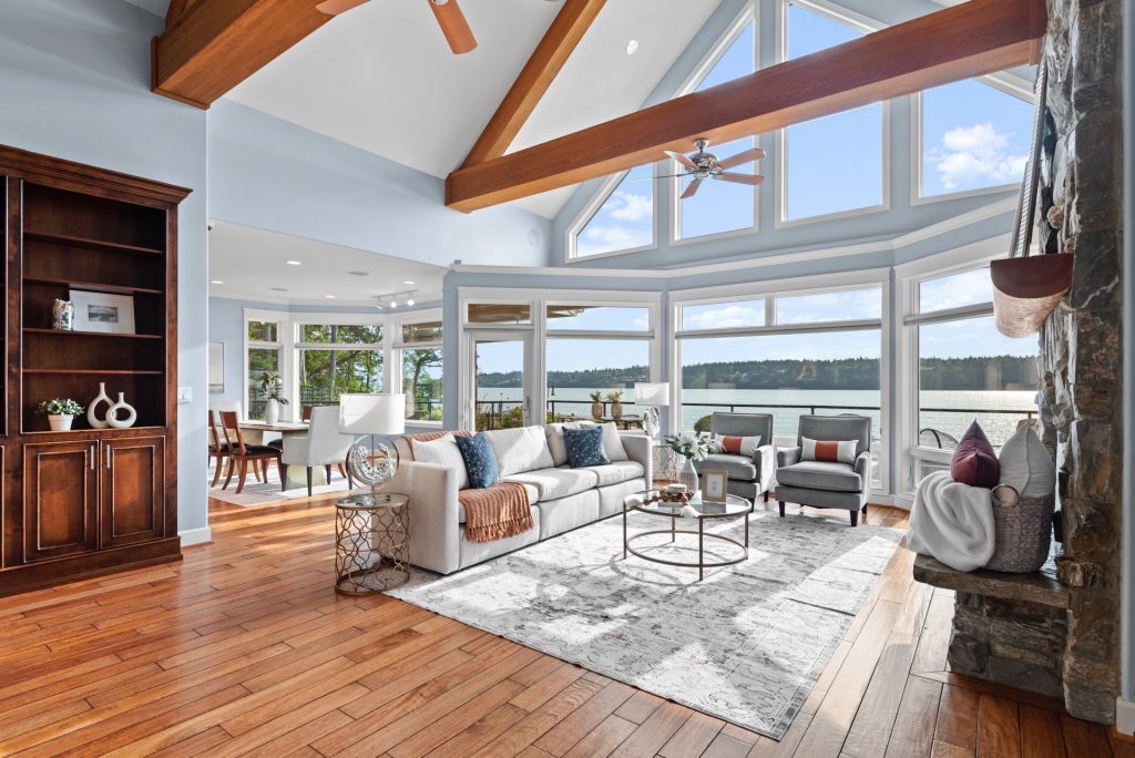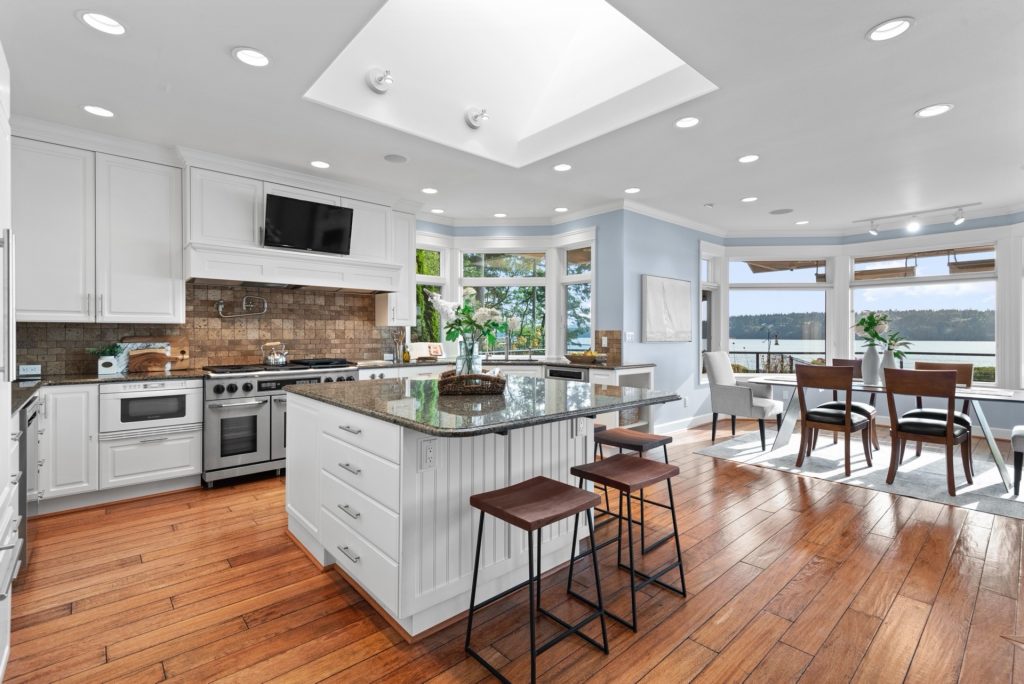 Discover unparalleled waterfront living on over 7 acres of pristine shoreline, offering 254 feet of west-facing waterfront and panoramic views of the Olympic Mountains and sparkling bay. This 4-bedroom, 5-bathroom estate spans over 6,000 square feet and is designed to embrace the natural beauty that surrounds it, with stunning views from nearly every room.