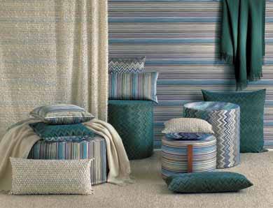 Selection of poufs and throw pillows by Missoni Home, prices upon request; available at Sustainable Style TEAM 7 showroom, 180 NE 39th St., Miami, 305-438-9663