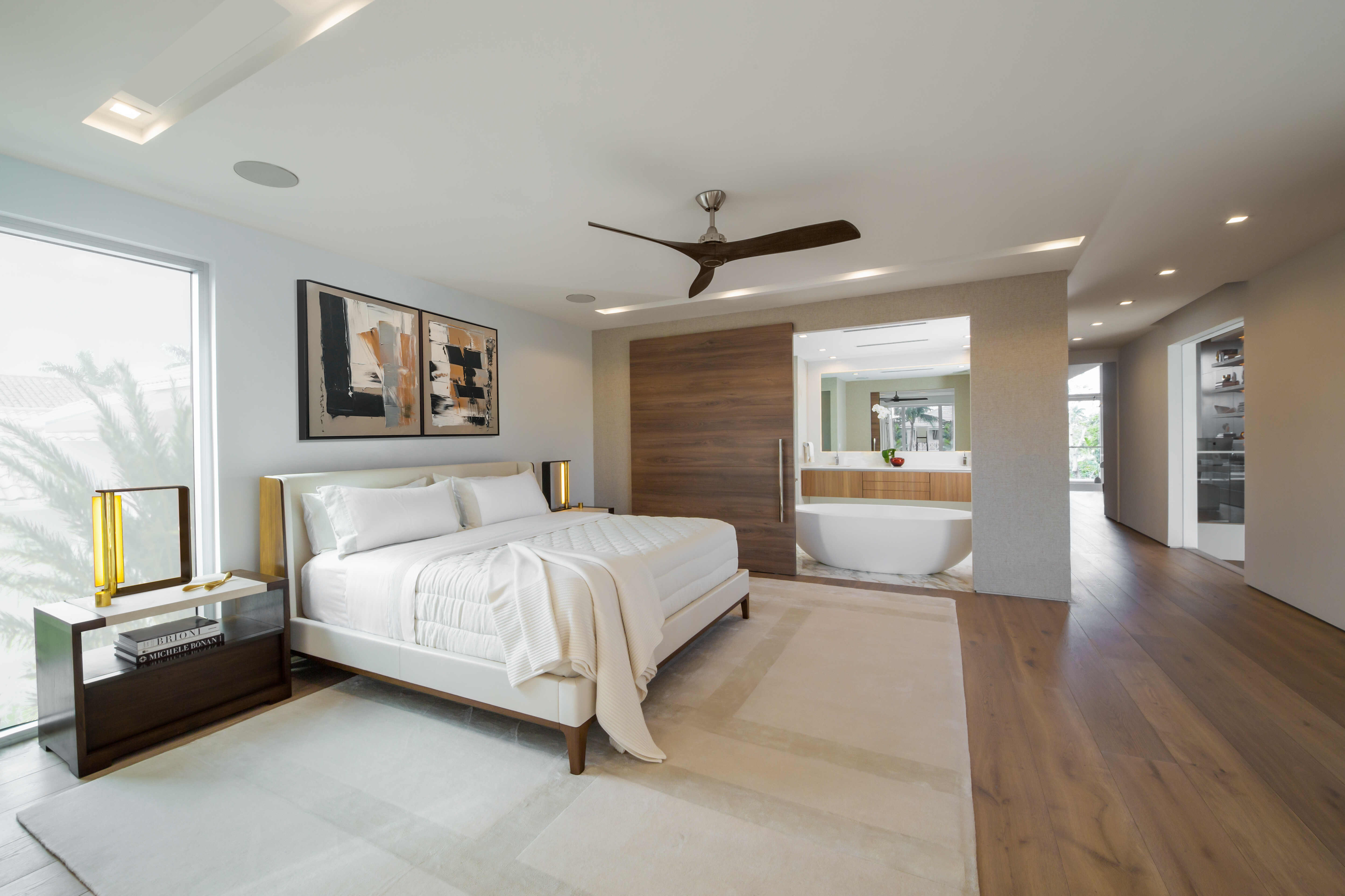 In the bedroom, Michael and the MS2 team used only the finest of materials. The bedding is fully-comprised of Jesurum Italian linen from E. Braun in New York. Michael noted, “The customer introduced me to the Jesurum line. He uses them on his yacht and wanted the same quality in his two Master Suites. The high thread count, soft hand and custom embroidery options are unique to this line and added an extra couture touch to this home.”