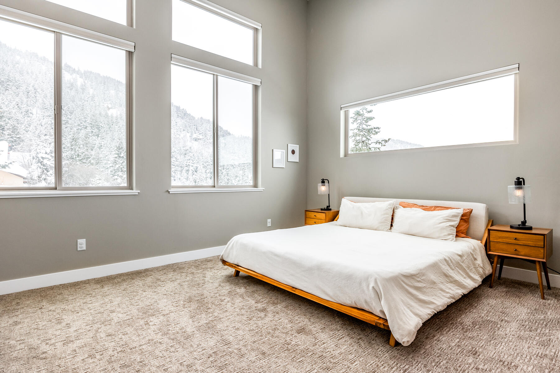 As you step inside this mountain retreat you are greeted by a home that boasts exquisite craftsmanship and luxurious finishes throughout. A southwest orientation fills the home with light even throughout the winter. The gourmet kitchen is a chef’s dream with Fulgor Milano stainless steel appliances, two large islands, and custom cabinetry. The informal dining room and living combine to create the ideal space for hosting dinners or holiday gatherings, with abundant windows to take advantage of the alpine setting. A large deck off the living room makes it easy to blend the indoor and outdoor spaces. The primary suite is a peaceful retreat, with a spa-like en-suite bathroom featuring a soaking tub and walk-in shower, as well as a spacious walk-in closet. Three other bedrooms are on this level, one en-suite and the other two sharing a jack-and-jill bathroom. A bonus flex room off the kitchen can be utilized in a variety of ways. The lower level features a large mud room with abundant storage, an oversized three-car garage, and a fifth en-suite bedroom.
