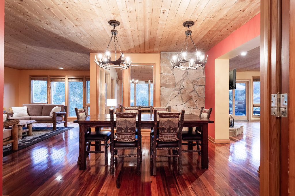 This charming, rustic home has amazing mountain views from every room. Recently updated with new vanity & sinks in the primary and upstairs guest bathrooms, and a dry sauna and walk-in closet in the primary bedroom. Current owners replaced the furnace and water heater and added air conditioning and a water softener in 2017. Situated on over ½ an acre on a small cul-de-sac in Pinebrook, enjoy the large, fully fenced patio and yard with grass, mature aspen trees, and the sound of the nearby seasonal stream. Although you feel nestled in the hills, the driveway is flat and you are a short walk to parks, restaurants, groceries, and Starbucks. Additional features include Brazilian Koa hardwood floors on the main level and stainless appliances in the kitchen. Flexible floor plan includes 3 bedrooms and 2 baths on the second level, a bedroom and 1.5 baths on the main level, and a bedroom, full bath, family room, and flex room on the lower-level walk-out. The large storage area is another welcome amenity.