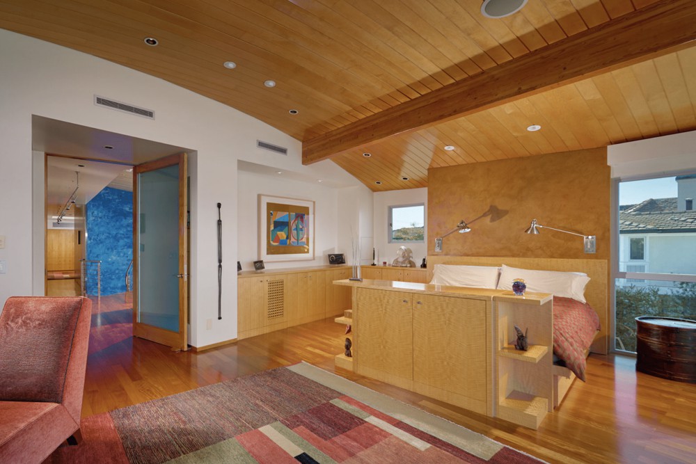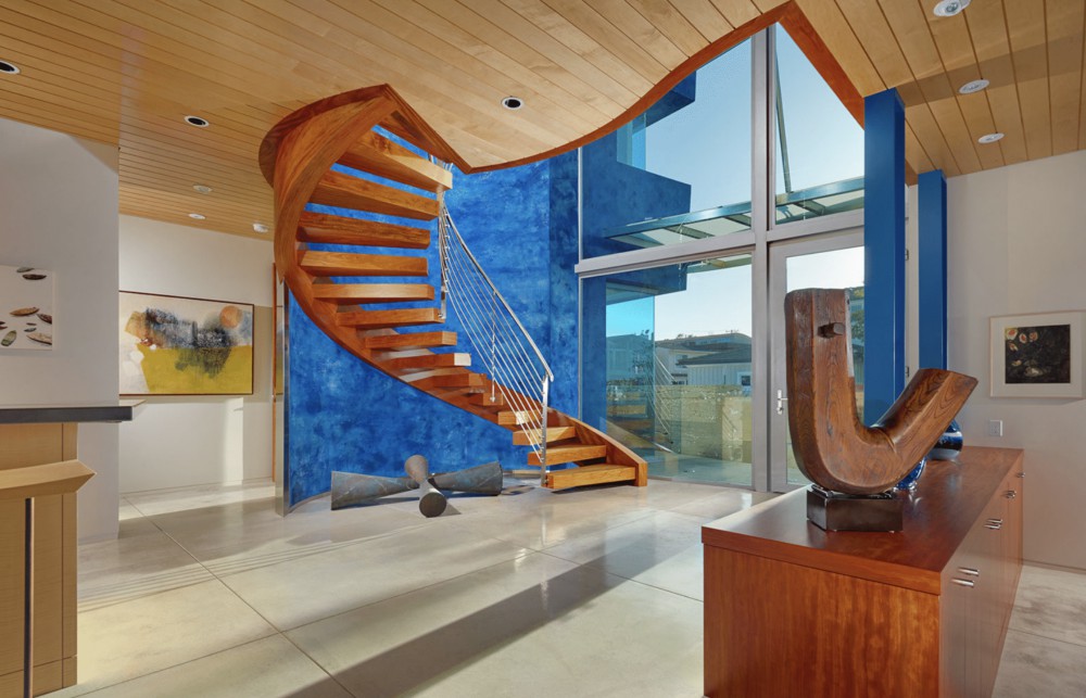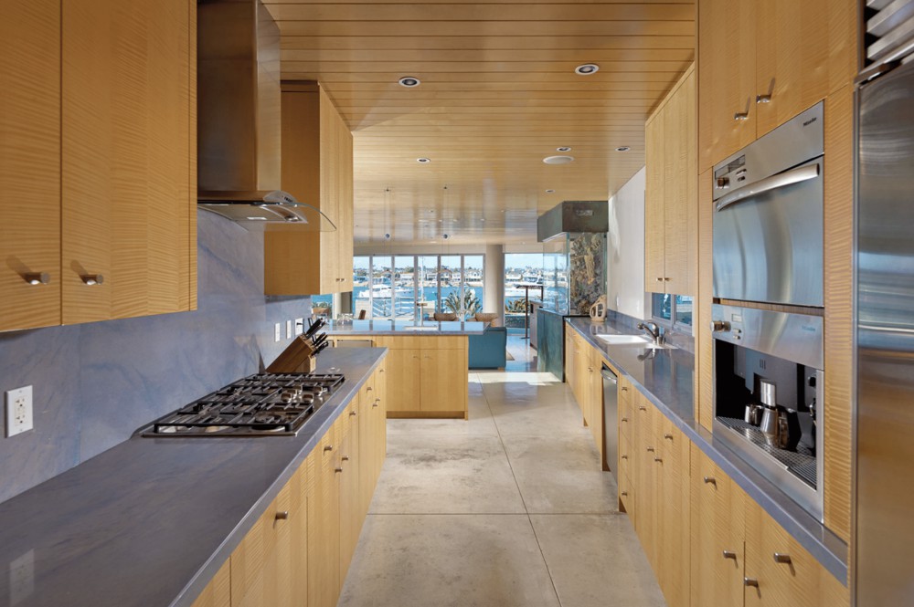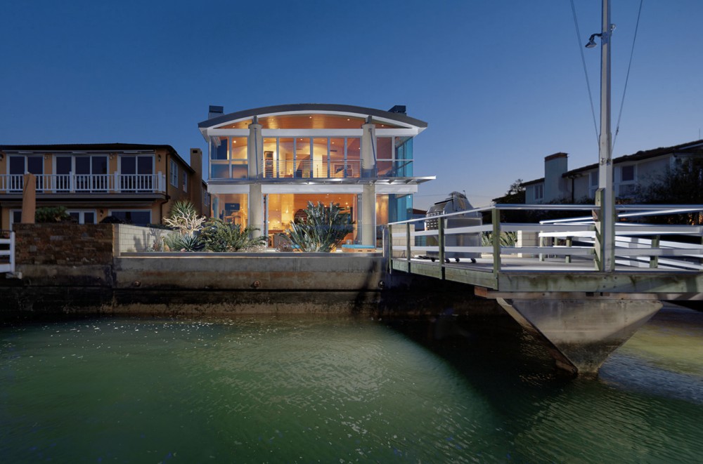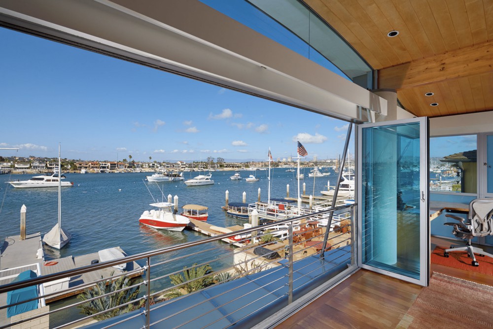 This nautically-inspired, Contemporary-style, Balboa Peninsula bayfront home was a collaboration between its “hands-on” owner and the late architect, Kurt Donat. Located on a prime corner lot with spectacular harbor, turning basin, Saddleback mountain and Fashion Island night light views, the home features stunning architecture, an extraordinary blending of indoor and outdoor spaces and a thoughtfully designed open floor plan. The downstairs of the home features a wall of floor to ceiling retracting doors to the outside, a huge great room with polished concrete floors and a metal fireplace, a large island kitchen with stainless steel appliances, English Sycamore cabinets and marble countertops; a downstairs bedroom with an ensuite bath, a powder bath and a huge 3-car attached garage. The upstairs of the home has a large waterfront master suite that extends the full width of the home and has a fireplace, built-in desk, and an elegant limestone bath complete with a Jacuzzi tub. In addition, there is a loft space, four large bedrooms and two generous sized baths. The palette of finish materials includes Maple ceilings, English Sycamore cabinets, Mahogany floors, limestone, marble, stainless steel railings, Venetian plaster, a Zinc roof, and Brazilian Blue granite. The 43 foot wide bayside patio features a firepit, lush succulent landscaping, and a private pier and slip for several boats. All the fun of Balboa is at your door, swimming, sailing, paddleboarding and more.